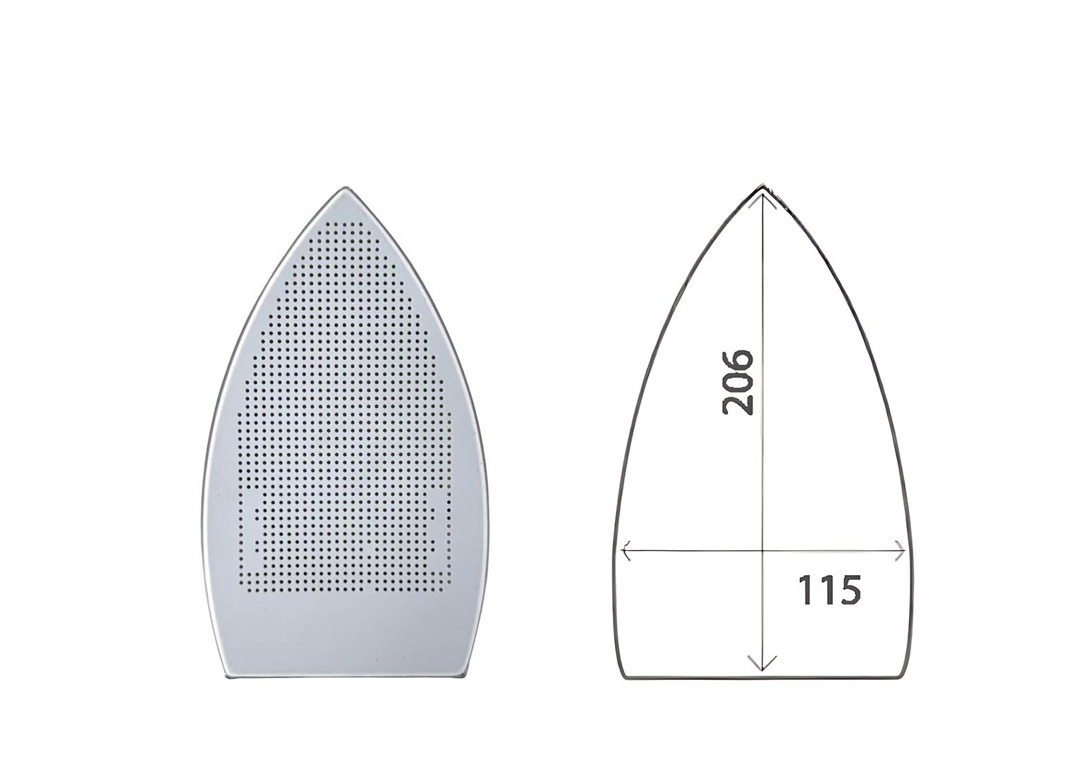 Las medidas específicas en milimetros se refieren a la base de la plancha.