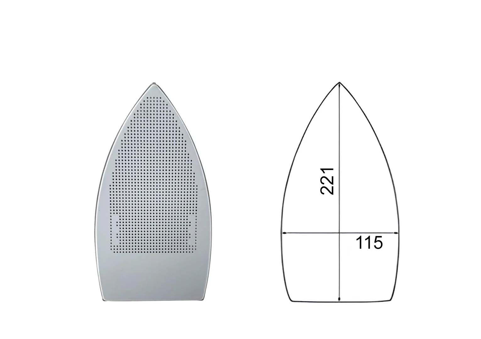 Les mesures indiquées en millimètres correspondent à la plaque du fer à repasser.