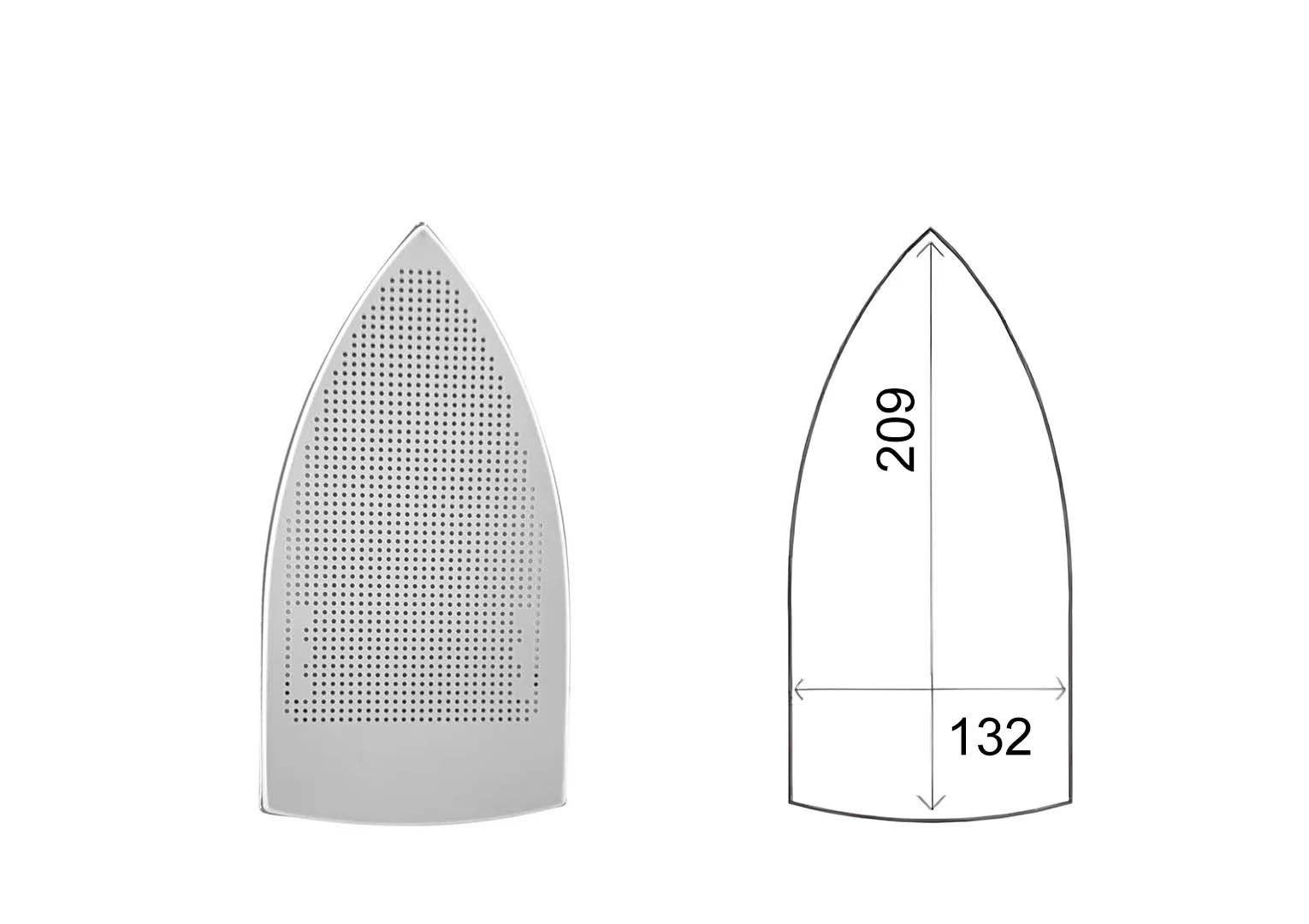 Les mesures indiquées en millimètres correspondent à la plaque du fer à repasser.