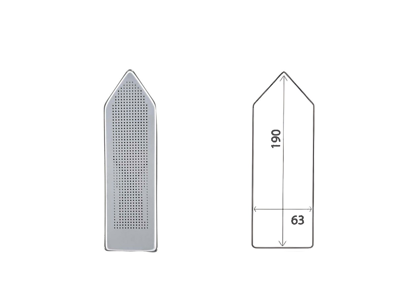 Les mesures indiquées en millimètres correspondent à la plaque du fer à repasser.