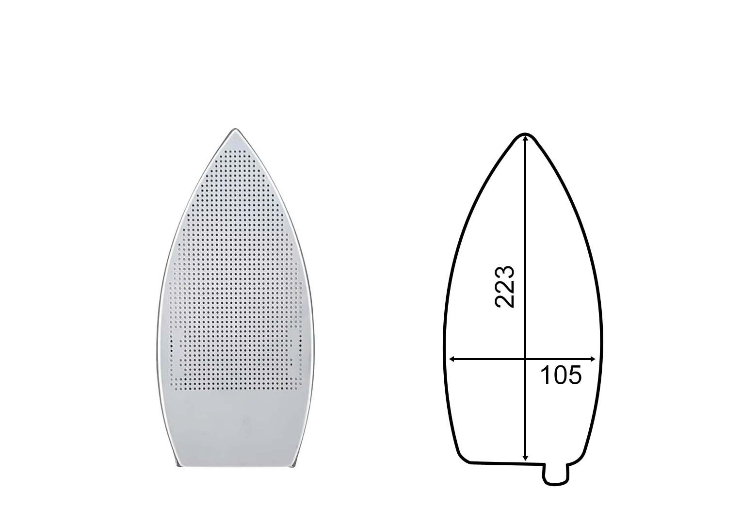 Les mesures indiquées en millimètres correspondent à la plaque du fer à repasser.